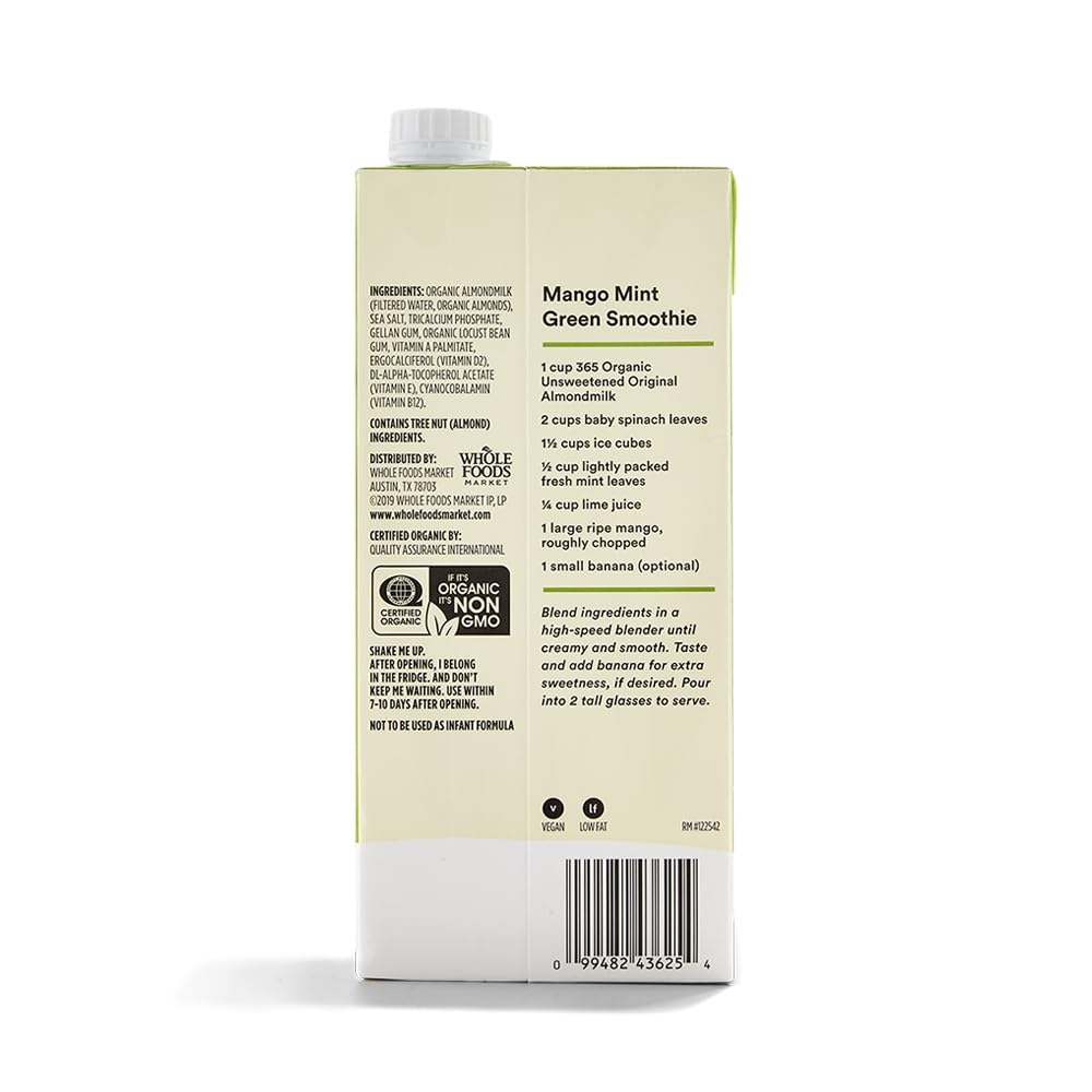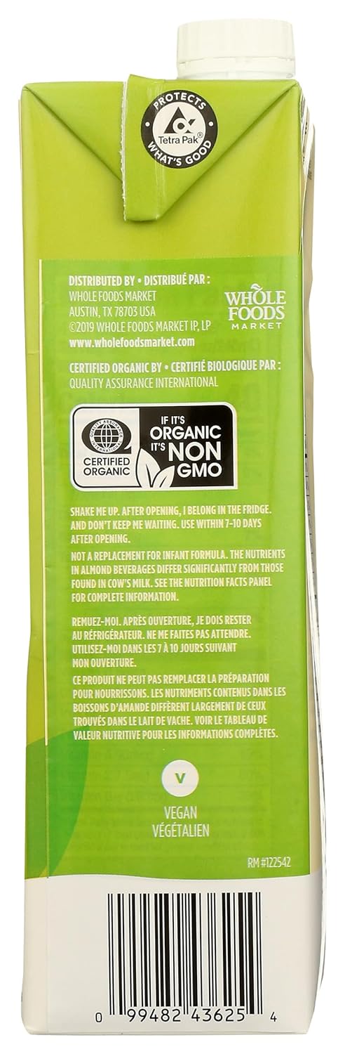 365 by Whole Foods Market, Leche de almendras orgánica sin azúcar, 32 onzas líquidas